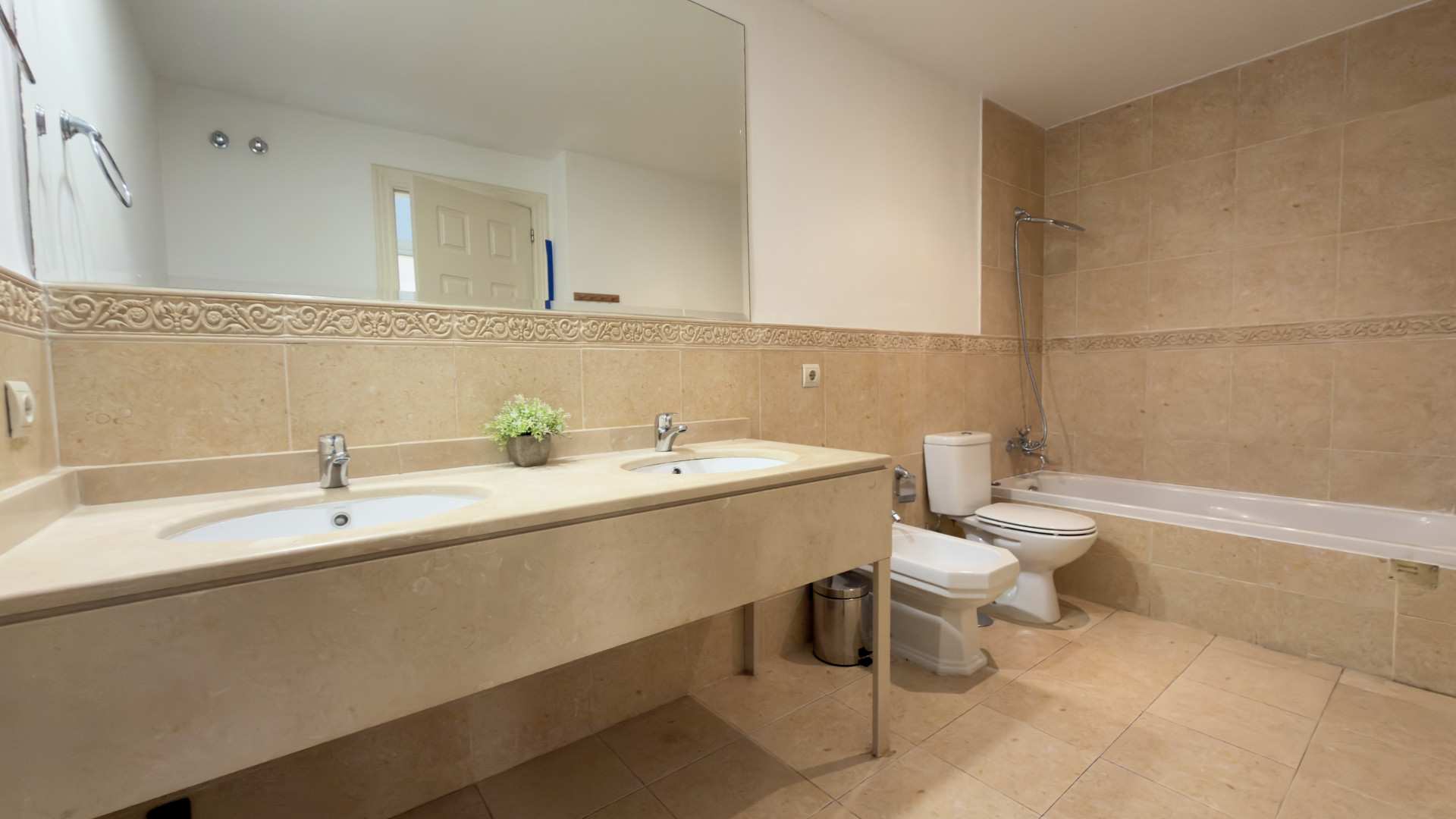 The apartment features two generously sized bedrooms designed to provide privacy and relaxation, along with two full bathrooms in very good condition. The kitchen, classic in style and fully equipped, remains in its original condition and offers a practical, functional space with ample storage for everyday use.