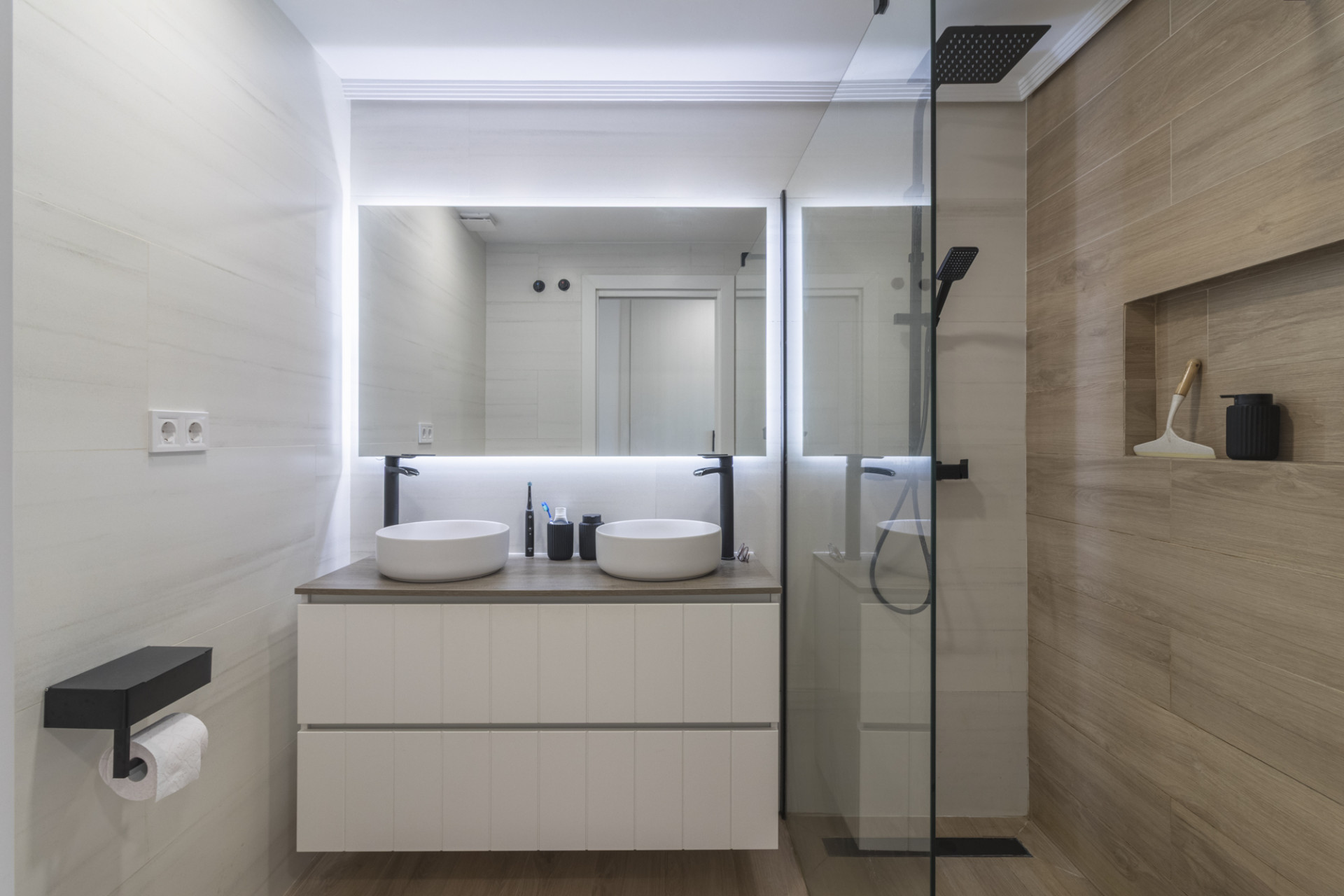 This ground-floor apartment, although it has an upper level and a large terrace. Upon entering the apartment, we find a spacious living-dining room and a separate, fully renovated and equipped kitchen. The apartment also has two large bedrooms and two renovated bathrooms (one of them en suite).