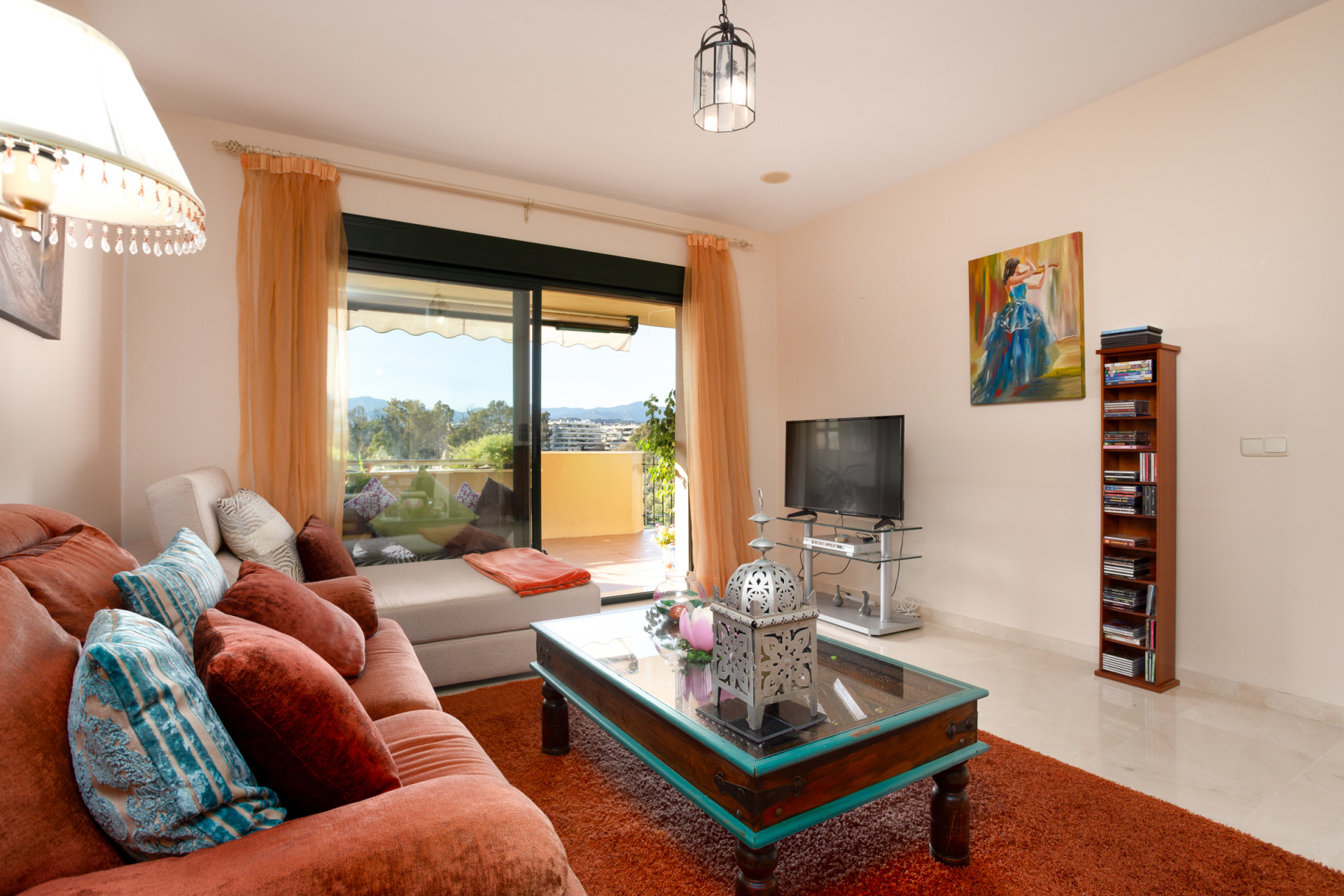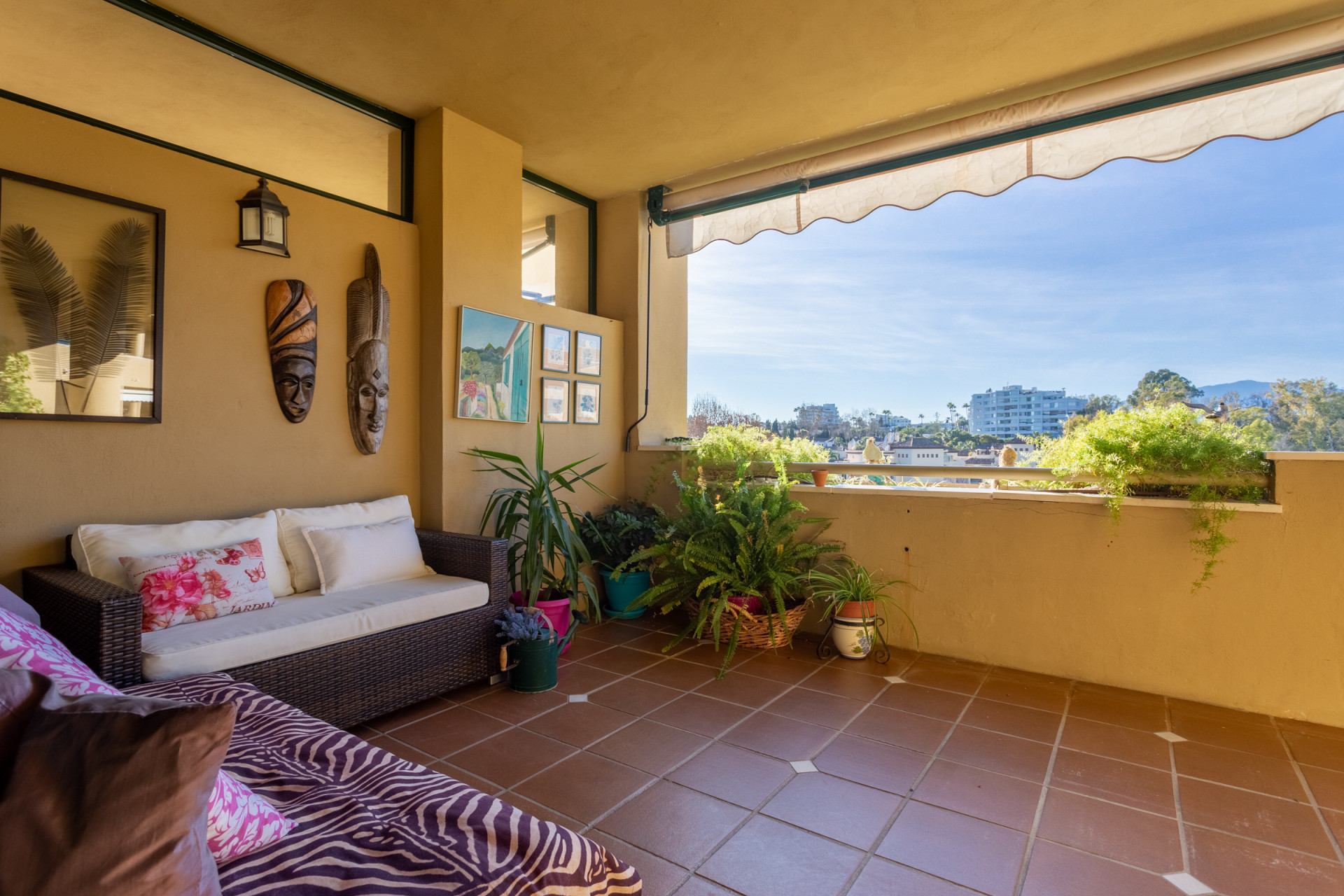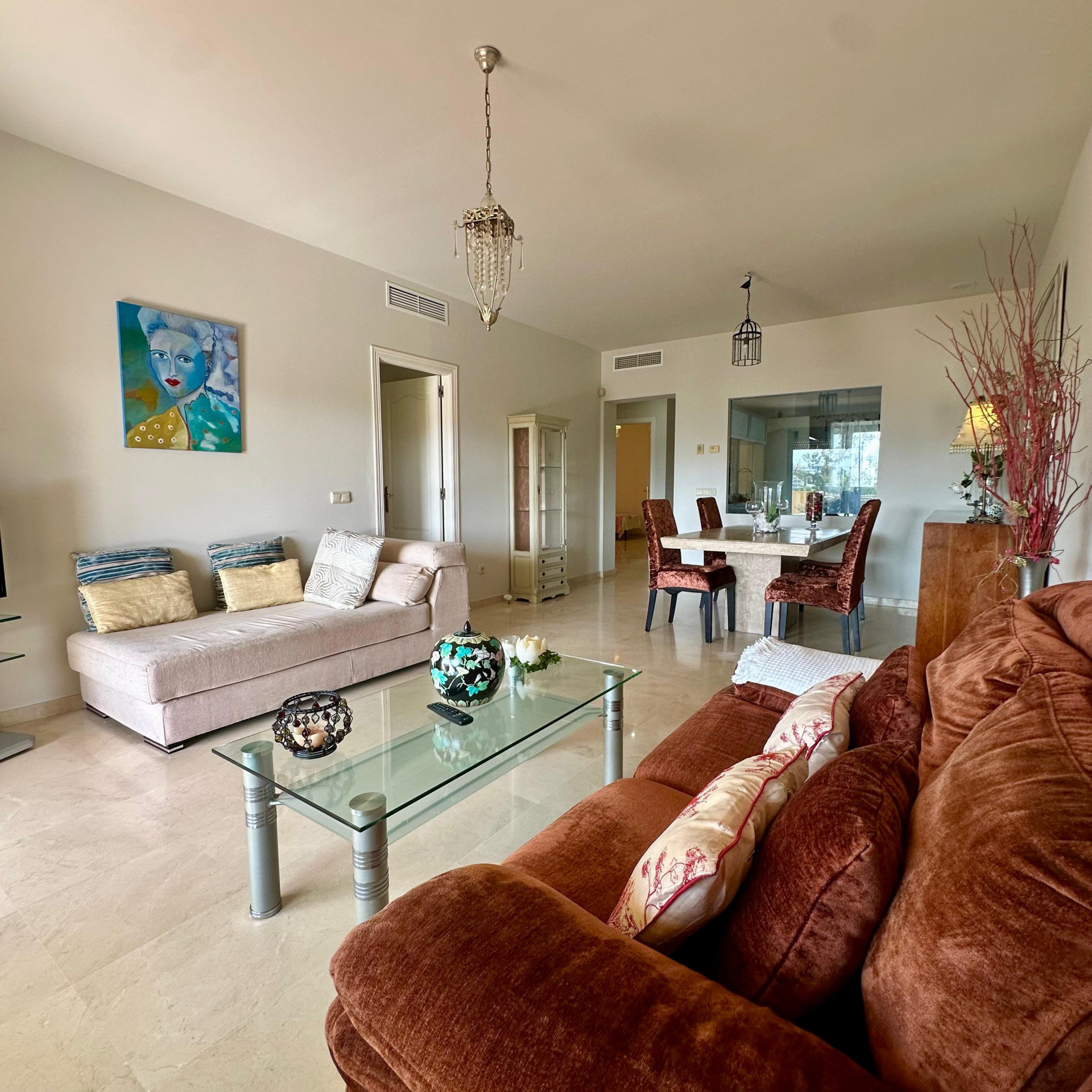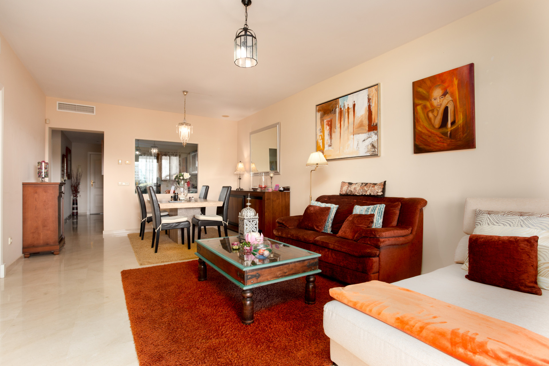 Located on a 4th floor, it stands out for its luminosity, spaciousness and open golf views. It has 145 m2 built, distributed in 2 large bedrooms (the main one with en-suite bathroom), 2 full bathrooms, and a large living-dining room with direct access to a covered terrace facing west, ideal to enjoy the evening sun and the climate of Marbella throughout the year.