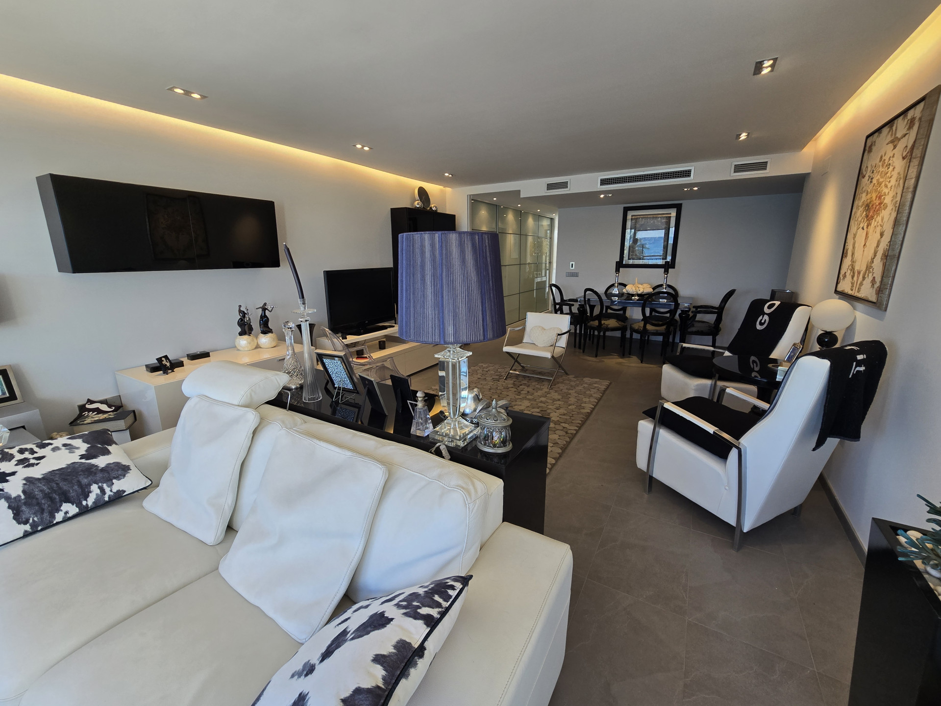 The property has been fully refurbished using top-quality materials and a contemporary design that perfectly blends style and functionality. Its well-planned layout features two spacious and bright bedrooms, one en-suite bathroom, and an additional guest toilet. The independent kitchen, fully equipped with high-end appliances, connects seamlessly to a sophisticated living room that opens onto uninterrupted Mediterranean views.