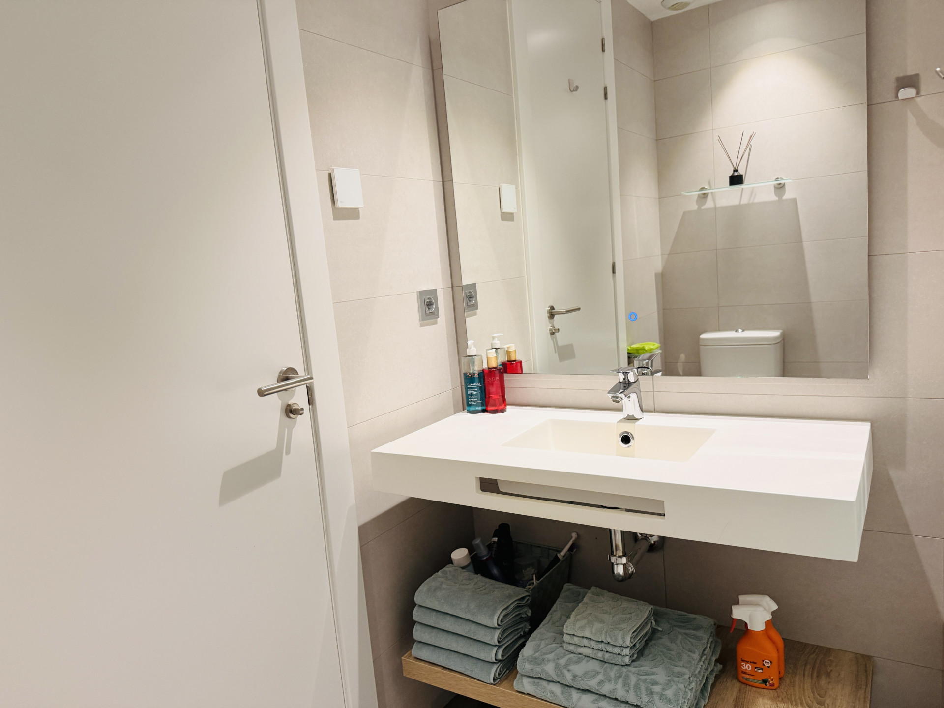 Flooded with natural light, the home enjoys a prized corner orientation with expansive south- and east-facing terraces—perfect for sun-drenched mornings through to late afternoons. Overlooking tranquil Mediterranean views, the outdoor spaces create a true urban sanctuary with a distinct resort-like feel.