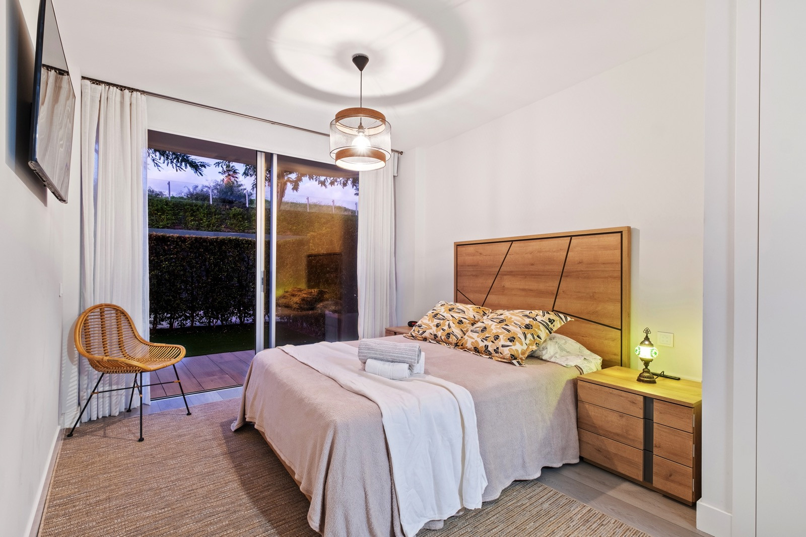 Spanning 121 m² of built space (103.58 m² usable), this bright and spacious south-facing residence boasts uninterrupted sea views and effortless accessibility via a lift, perfect for all ages. The open-plan living-dining area flows seamlessly onto a generous 35 m² terrace and a private 32.2 m² garden, creating an idyllic outdoor oasis for relaxation or entertaining. The fully equipped kitchen features premium Gaggenau appliances, while the master bedroom includes an en-suite bathroom, built-in wardrobe, and direct garden access. The second bedroom offers a fitted wardrobe and similar garden entry. All high-end furniture is included, complemented by aerothermal energy systems, underfloor heating, air conditioning, and domotic-controlled blinds for modern efficiency and comfort. Additional perks include a 7 m² storage room and dedicated parking space.