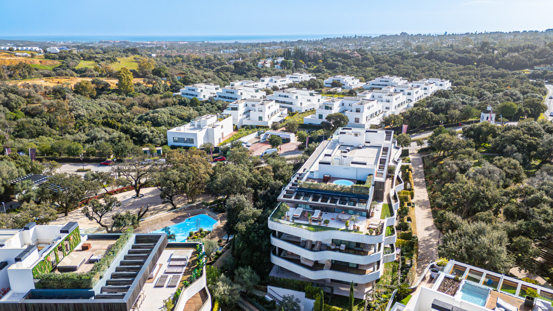 This exceptional four-bedroom penthouse in Village Verde represents the pinnacle of luxury living in La Reserva de Sotogrande. The residence features 209 m² of sophisticated internal space and a monumental 346 m² wrap-around terrace and solarium, including a private plunge pool and firepit. Each spacious bedroom includes a private en-suite bathroom, complemented by a guest powder room, laundry area, and direct lift access. This brand-new home is a benchmark for sustainability, holding a prestigious A/A Energy Certificate and meeting rigorous BREEAM and WELL standards.