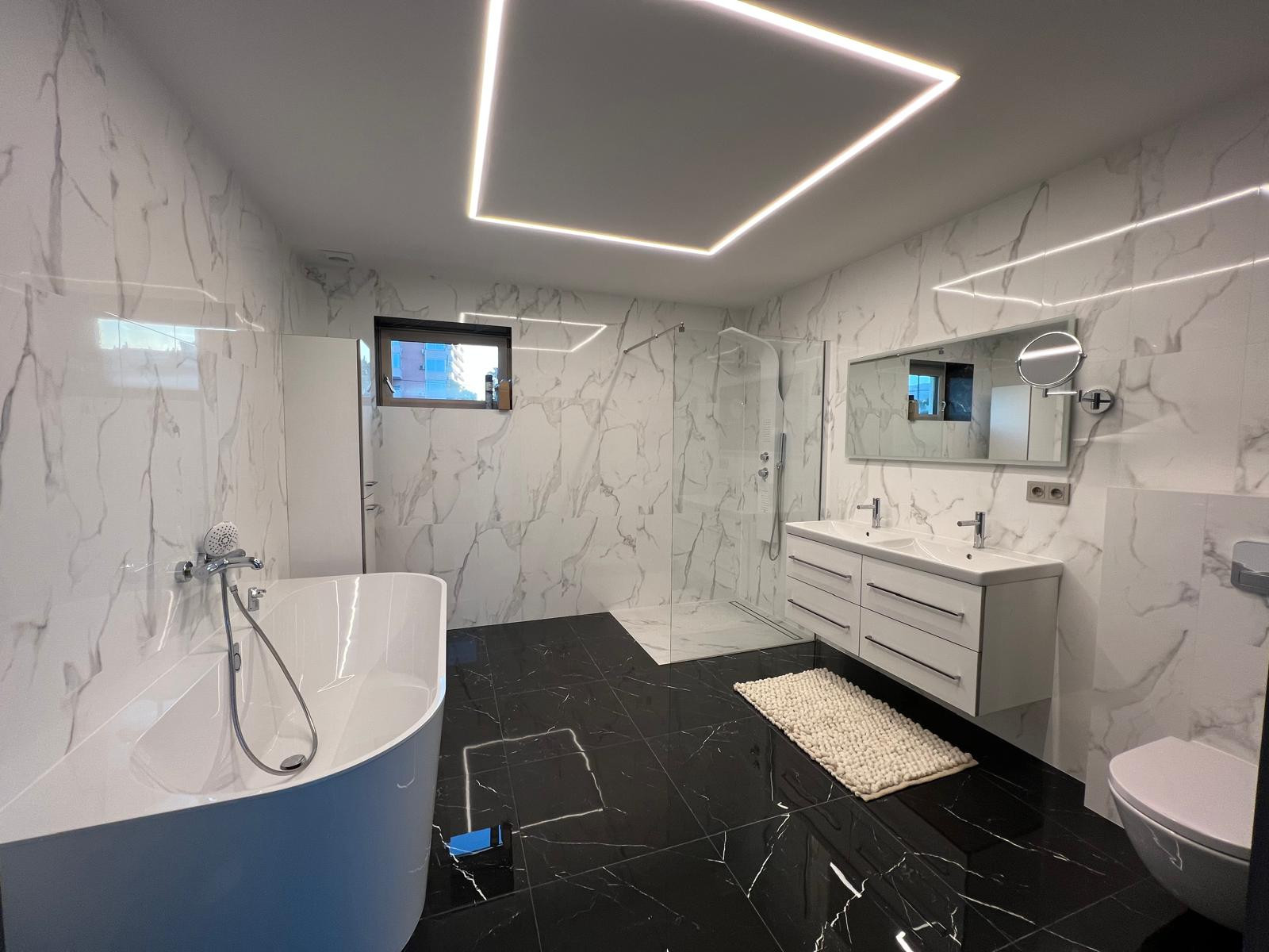 Equipped with double-glazed windows, Villeroy & Boch fixtures, solar panels, home automation, and underfloor heating throughout.