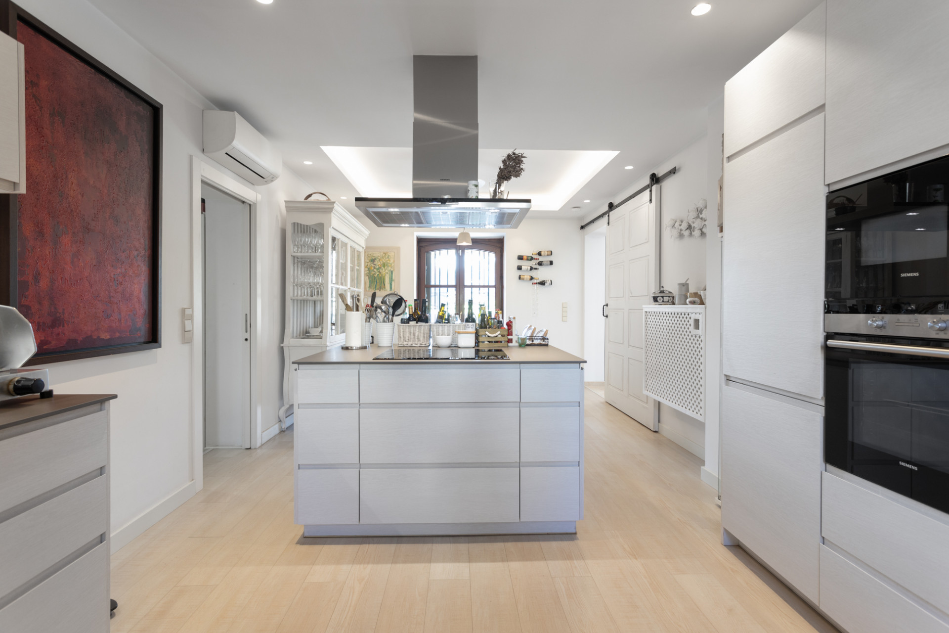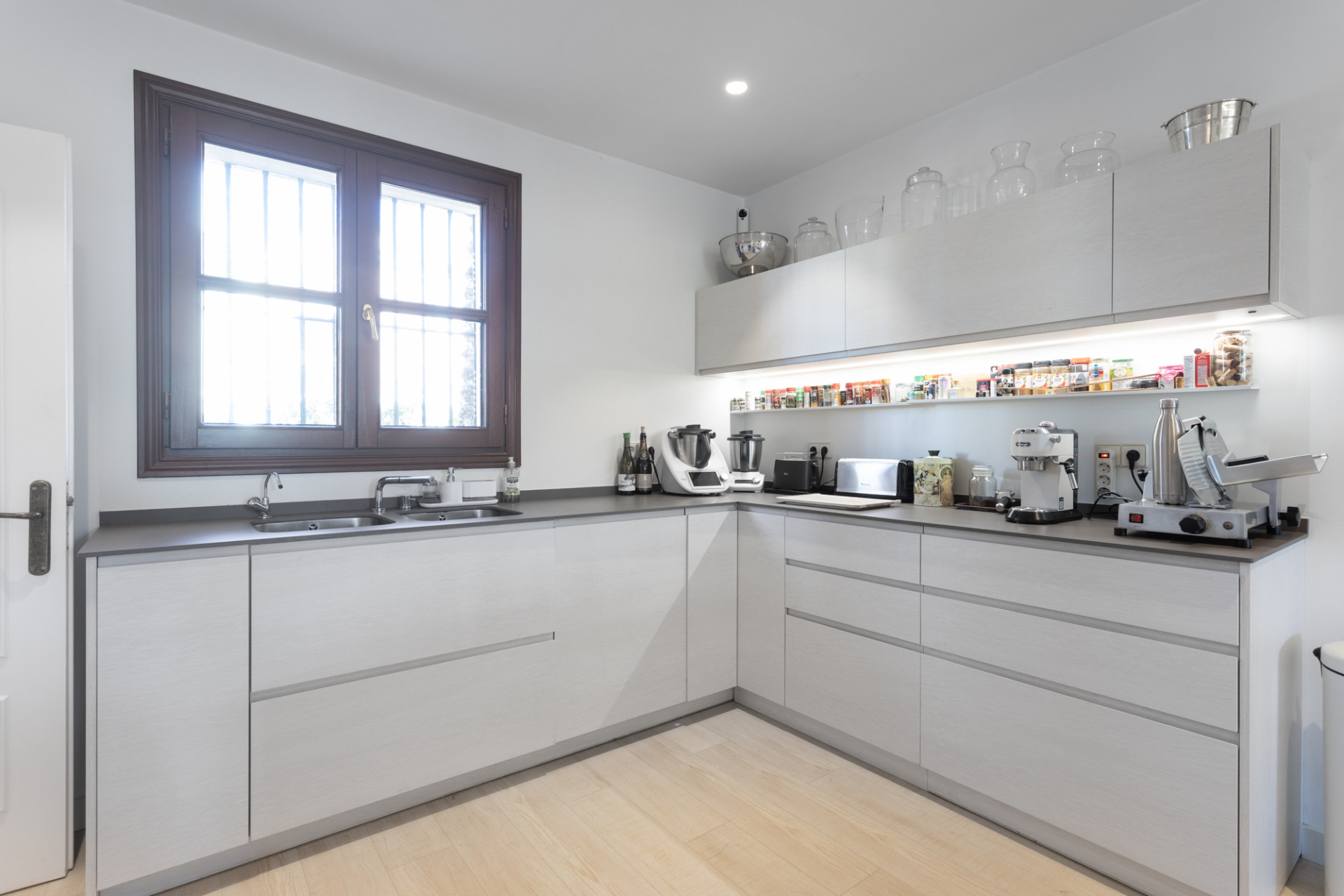 The main floor brings together the living areas in a comfortable and well-connected environment. Spacious living room with fireplace and large windows and direct access to a large covered terrace that extends the space to the outside and allows you to enjoy pleasant views of the golf course. On this level there is also a guest bedroom, currently used as an office, along with a bathroom with shower. The recently renovated and fully equipped kitchen is integrated with the dining room and has direct access to the terrace. It has a separate laundry room with access to a service room with its own bathroom.